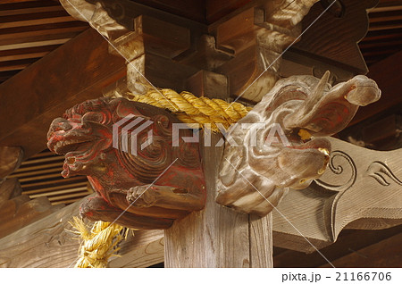 信州 松本の文化財 千鹿頭社本殿 向拝・木鼻・海老虹梁 縦 江戸時代の建築