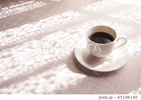 テーブルの上のコーヒーと午後の陽射し
