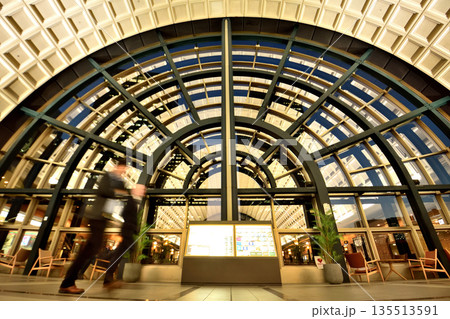 午後の日差しが差し込みサークルの窓の影が映りこむ天王洲のビル