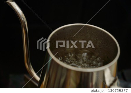 ドリップケトルの中でお湯が沸騰する様子。ペーパードリップでコーヒーを淹れる工程の連続写真。