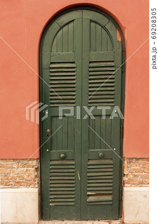 半円アーチ型の両開き木製扉・ベネチア:ムラーノ島