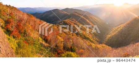 奥日光・社山から見る半月山駐車場と紅葉の山並み