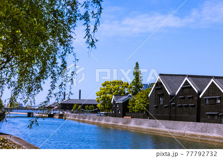 早朝の半田運河沿いにある蔵のまち 愛知県半田市