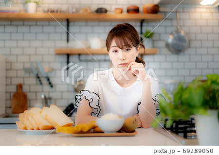 炭水化物ダイエット 夜中にお腹が空いてじっと我慢する若い女性