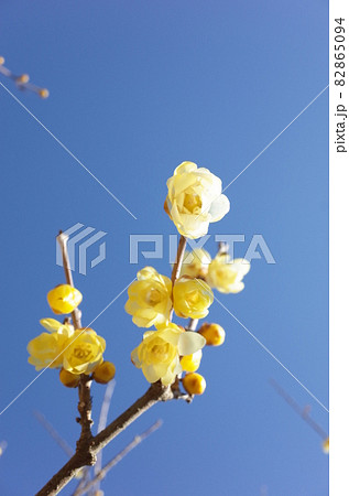 冬の晴れた日に咲く素心蝋梅(ソシンロウバイ)の花