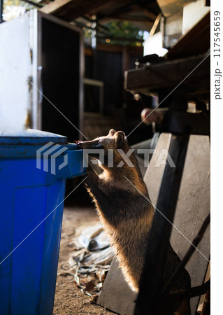 ご飯を探すタヌキ