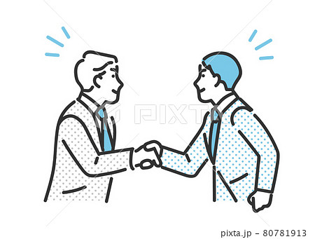 契約成立。笑顔で握手をするビジネスマンのベクターイラスト素材。