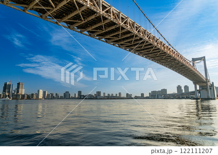 (東京都)芝浦南ふ頭から見上げるレインボーブリッジ