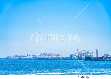 東京の都市風景 芝浦南ふ頭公園から品川埠頭方面の風景