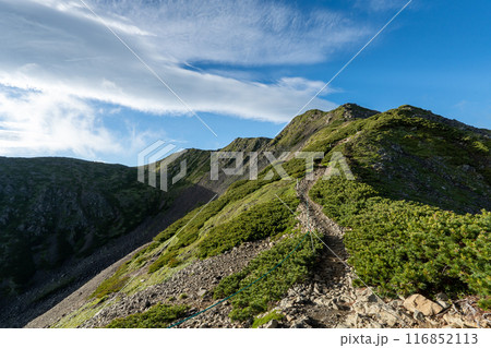 仙丈ケ岳登山道から望む南アルプスの山並みと塩見岳②