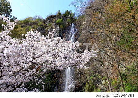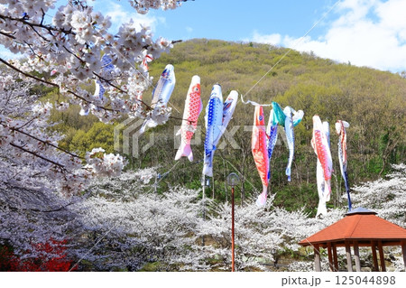 【香川【香川県】桜咲く春の不動の滝カントリーパ県】桜咲く春の不動の滝カントリーパーク(桜と鯉のぼり)
