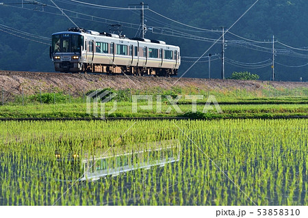 鉄道 列車 山陰本線 京都口 223系 普通 ローカル 園部~船岡 南丹市 田んぼ 田園 稲穂 苗