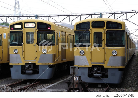 車両基地で並ぶ西武鉄道2000系