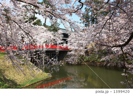 爽やかな朝を迎えた杉の大橋と南内門 弘前城 青森県