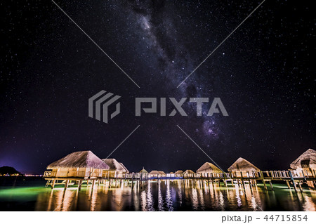 水上コテージの夜空
