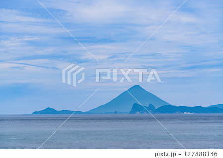 道の駅根占近くの海から見た開聞岳