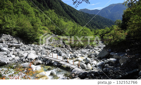 北アルプスの秋 涸沢カールへの道 本谷橋