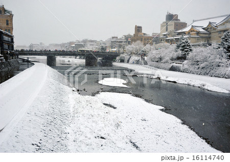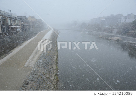 京都 雪の降る鴨川