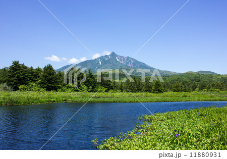 初夏の南浜湿原 カキツバタと利尻山