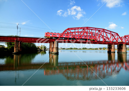 紀ノ川橋梁を走るめでたい電車(南海電鉄) 【和歌山県和歌山市】