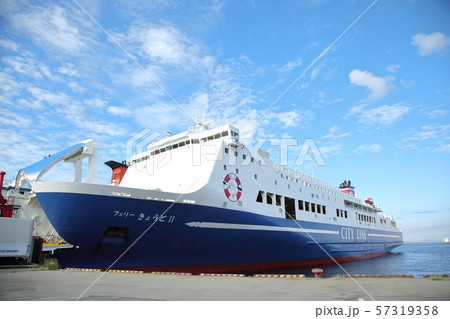 大阪府、大阪南港に停泊する大型フェリー