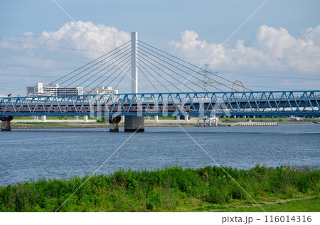 東京メトロ東西線の荒川中川橋梁を走る東葉高速鉄道車両