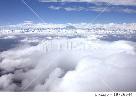 雲海に浮かぶ南米最高峰アコンカグアをアンデス山脈上空から見る