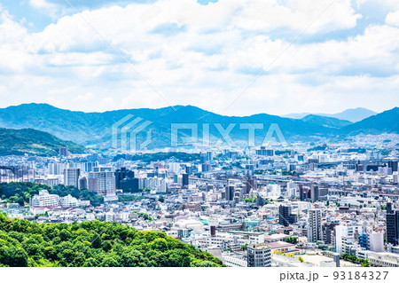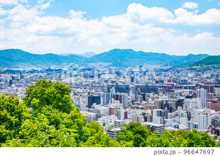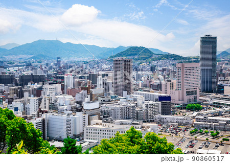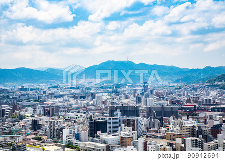 広島市街地の遠景風景です。広島駅が中央、比治山公園から東側を撮影しています。