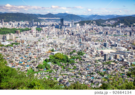 広島駅北側の二葉山山頂からの広島市街地遠景風景です。東方面の山根町、東山町遠くは府中町まで見えます。
