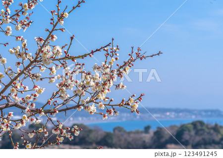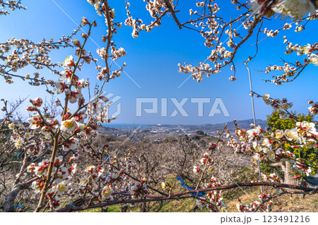 青空に映える白梅 みなべ町南部梅林 2025