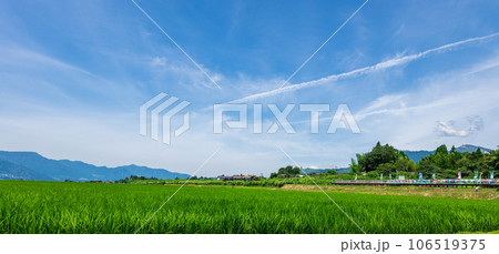大自然の美しい稲穂と空風景「白川水源駅・ホタルの里」周辺から観た初夏・夏風景