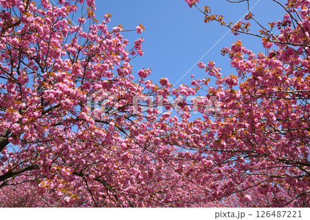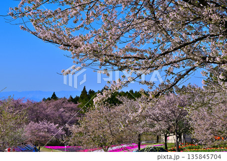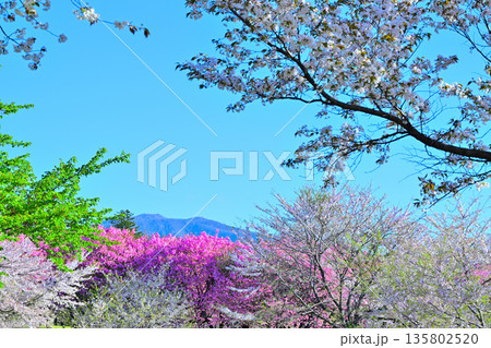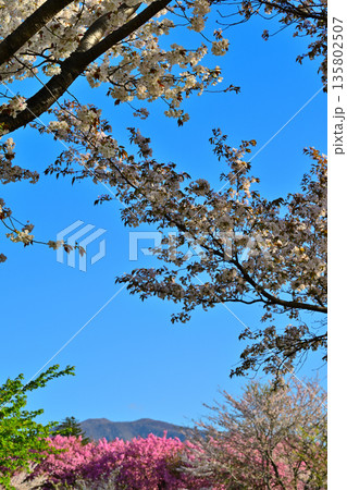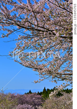 赤城南面千本桜 青空に映える桜 遠くに山並