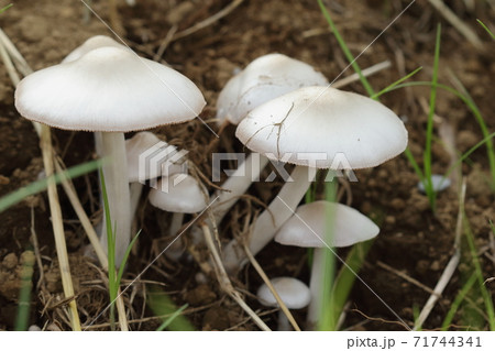 自然 茸 シロフクロタケ、白くて滑らかな肌。傘の大きさは十センチ内外の美しいキノコです