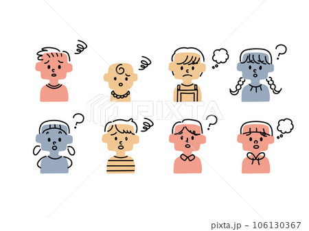 がっかりしたり疑問を感じたりしている子供のアイコンセット