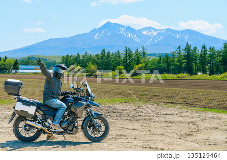 北海道の斜里岳とバイク