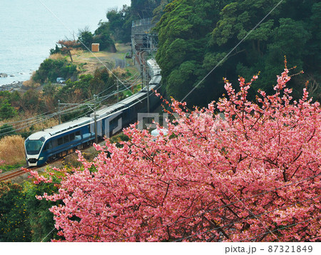 河津桜と特急列車