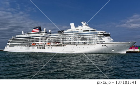 博多港箱崎ふ頭に停泊中のクルーズ客船飛鳥Ⅱ