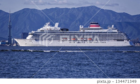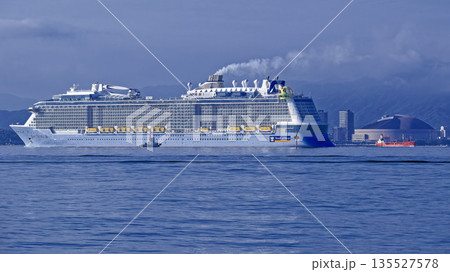朝の博多湾を航行する豪華客船スペクトラムオブザシーズ
