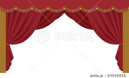 アラビア模様の緞帳_背景イラスト_赤_16:9