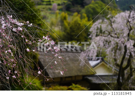 【南信州の桜】快晴の朝の杵原学校のしだれ桜【長野県】