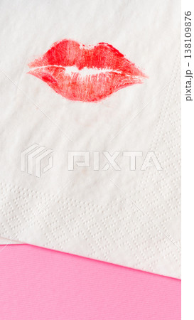 Kiss mark on a napkin resting on a pink surface during a party or gathering
