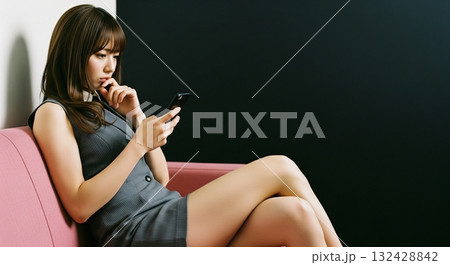 綺麗な女性。ミニスカートから伸びる長く存在感のある太もも