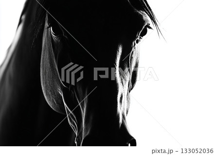 馬のシルエットアート・光で浮かび上がるモノクロの動物イラスト