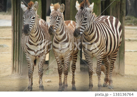 グラントシマウマ3頭が並ぶ姿 群れと調和を感じる野生動物のシーン