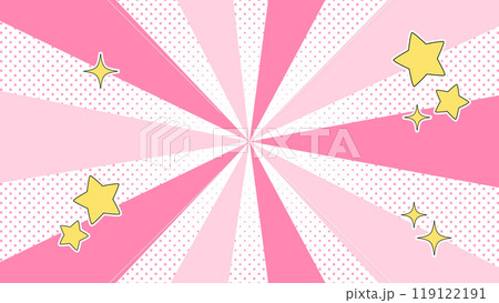 カラフルなストライプ背景から顔をのぞかせる少女のイラスト
