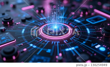 Futuristic Interface with Bright Visuals and High-Tech Effects on Dark Surface