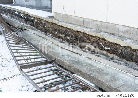 経年劣化で倒れた擁壁とフェンス