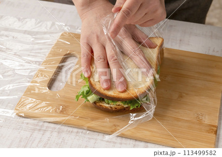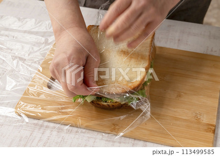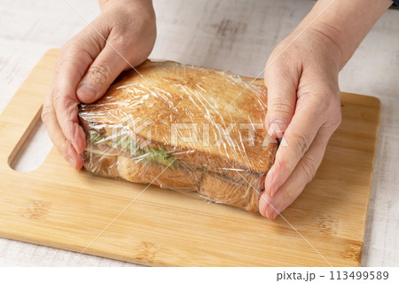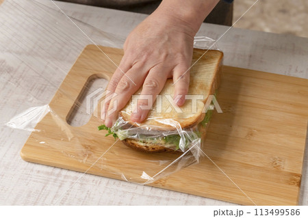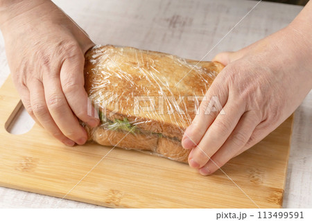 サンドイッチ 作る 工程 ラップで包む