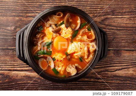 韓国料理チゲ typical Korean seafood hot pot (Jjigae)