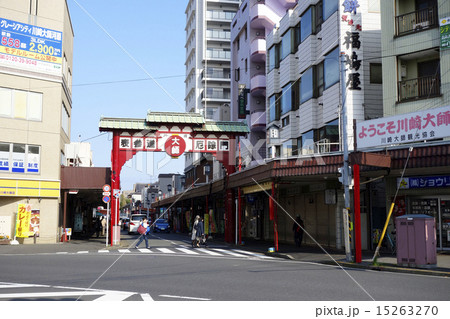 日本の川崎都市景観 川崎大師駅前・川崎大師 表参道厄除門やごりやく通りなどを望む
